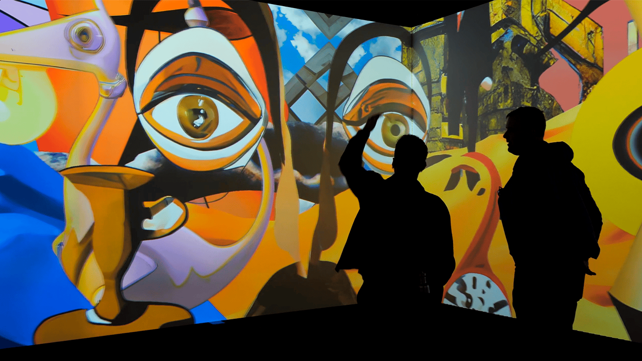 The audience could enjoy an immersion in several 3-minute animated pieces co-created by visual artists and Jasper’s AI system. A3 Visual built the room hosting the experience, and handled the AV system for the immersive mapping. The setup relied on 10 x 12K Panasonic projectors powered 2 x Modulo Kinetic media servers by Modulo Pi.
