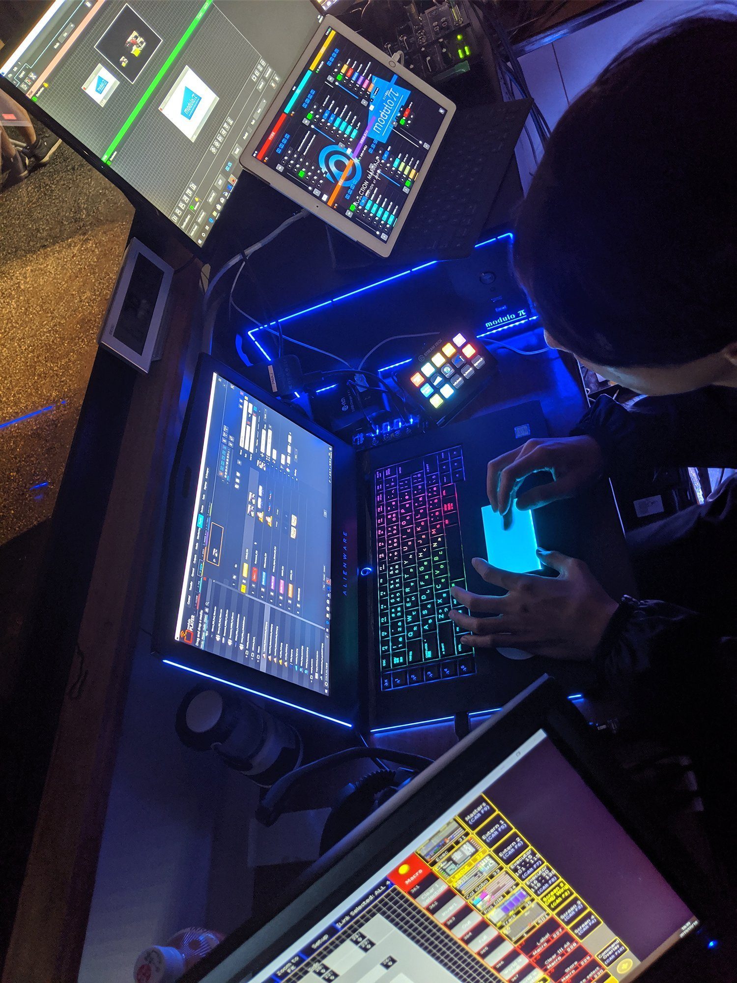 Modulo Player also allowed having a Monitoring screen sent with NDI, as well as a user panel to control the playlists for the show from a tablet.