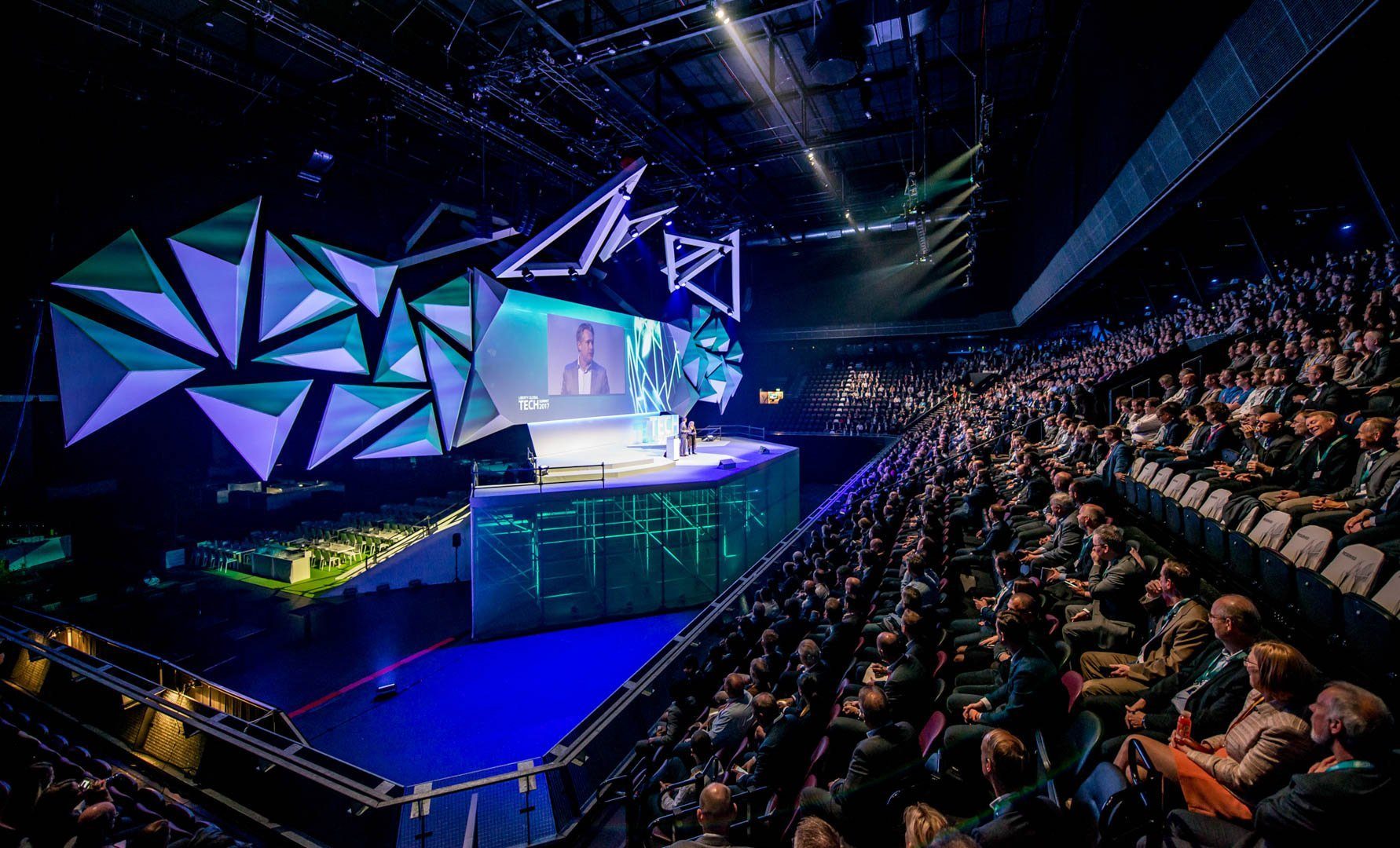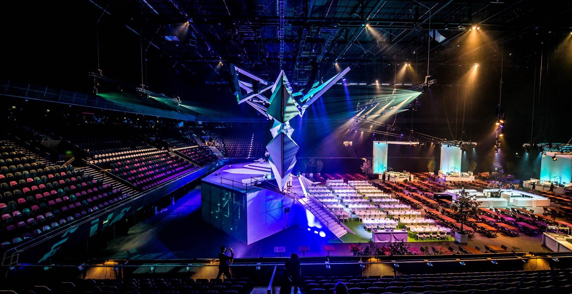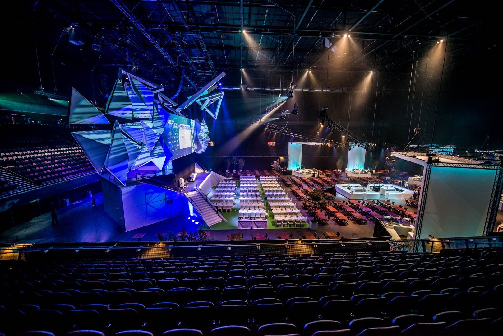 “In collaboration with NEOC we created a double sided 18 meter widescreen. One side was for the day program and the other, exact copy, was for the award show during the evening. We used Barco HDX W20 flex projectors and a Modulo Pi media server. The Modulo Player has the capability of near zero latency capturing of live inputs so all camera feeds where managed by the Modulo server. Also we used our Powerpoint servers, vMix set and remote controlled timer software. All was controlled by the modulo server so the complex show was operated by just 1 technician.” BeamBrothers