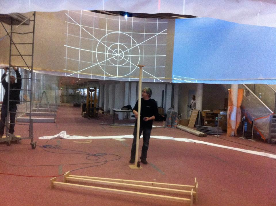 The two systems are fixed installations. The first is a touch screen where the application is handleded by Modulo MG. The second is a 360° wide projection sreen. The 360° screen playback is granted by 6 projectors.