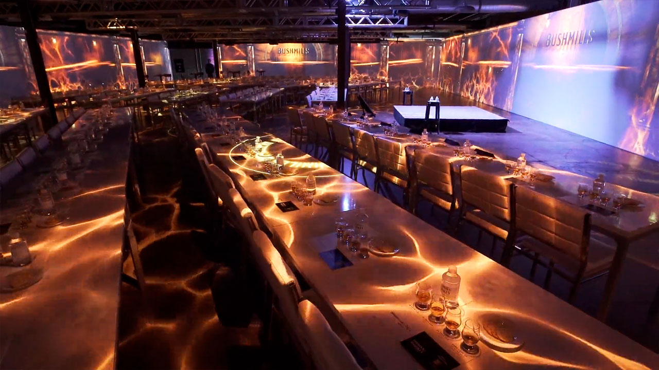 A3 Visual was entrusted with the technical production of the experience. In Chicago, Bushmills’ Origins of Whiskey took place at West Loop’s Morgan Manufacturing. From March 1-3, the sold-out event played 4 times a day, welcoming 100 guests per show.