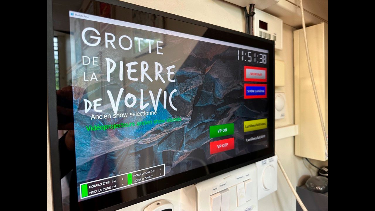 Thanks to the central control panel, the reception teams can select the show to be launched, but also control the audio announcements, service lights, choose the power level of the smoke machines, or see the countdown to the next tour departure. Test sequences have also been integrated by S SGroup Equipement: “The teams on site can run test sequences to check that everything is working properly in the cave: Smoke, light, sound, video-projectors, etc. If everything is OK, they can launch the show” explains Sylvain Roos.