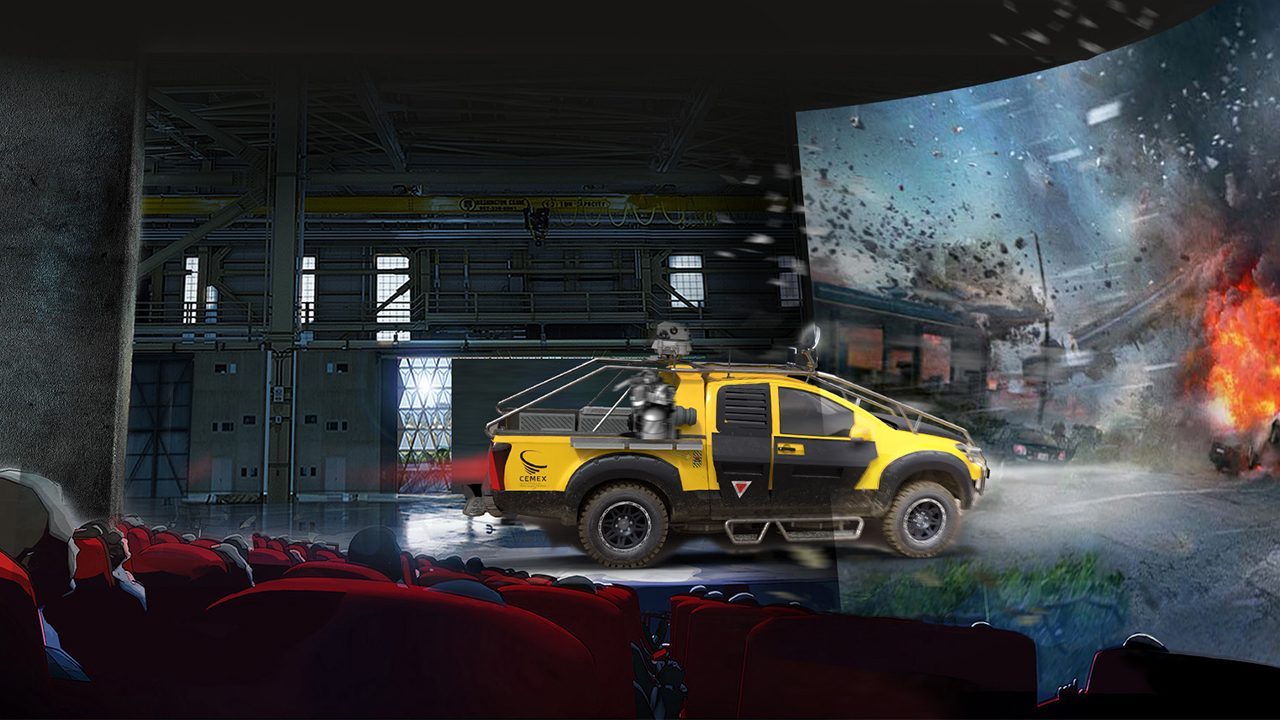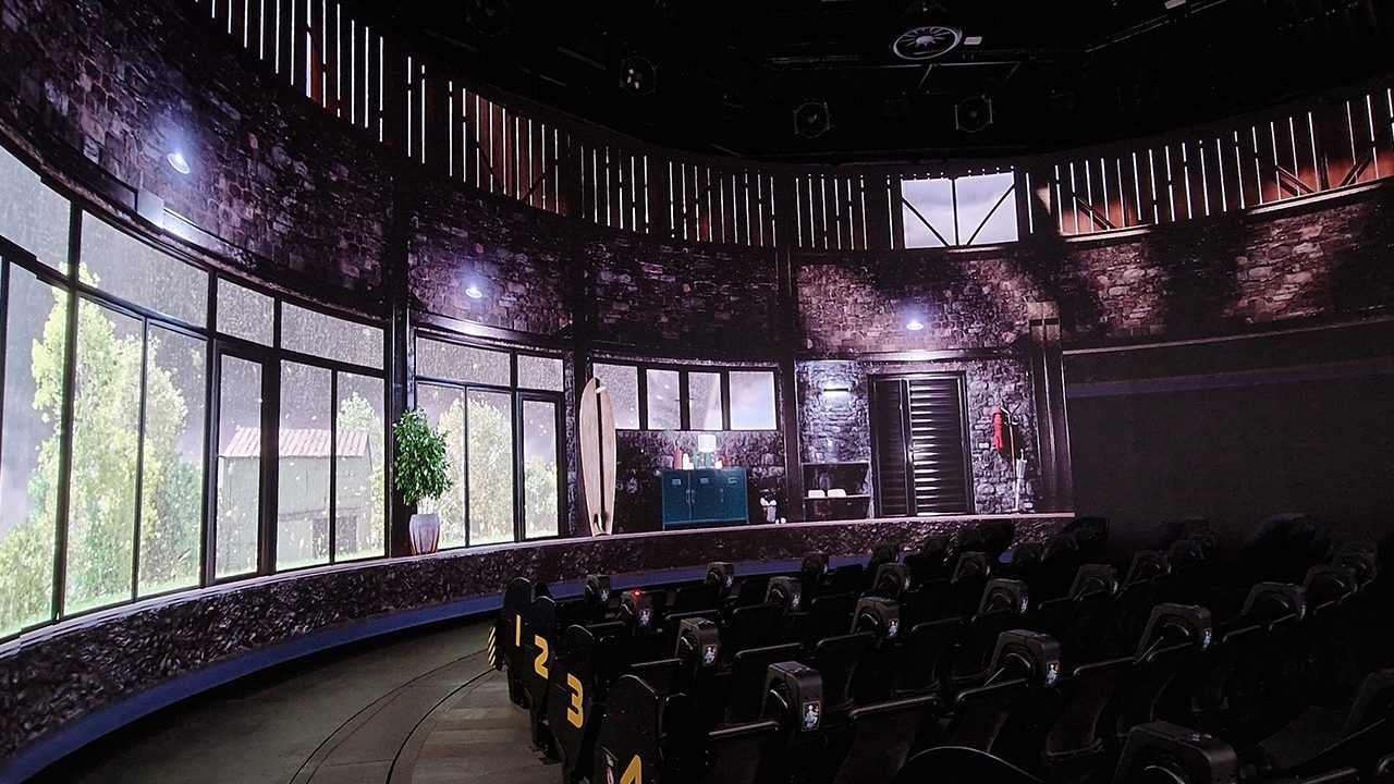 The public then enters the attraction: A 120-seat dynamic motion theater surrounded by a 360° LED screen are central to the immersive experience that spectators are about to live.