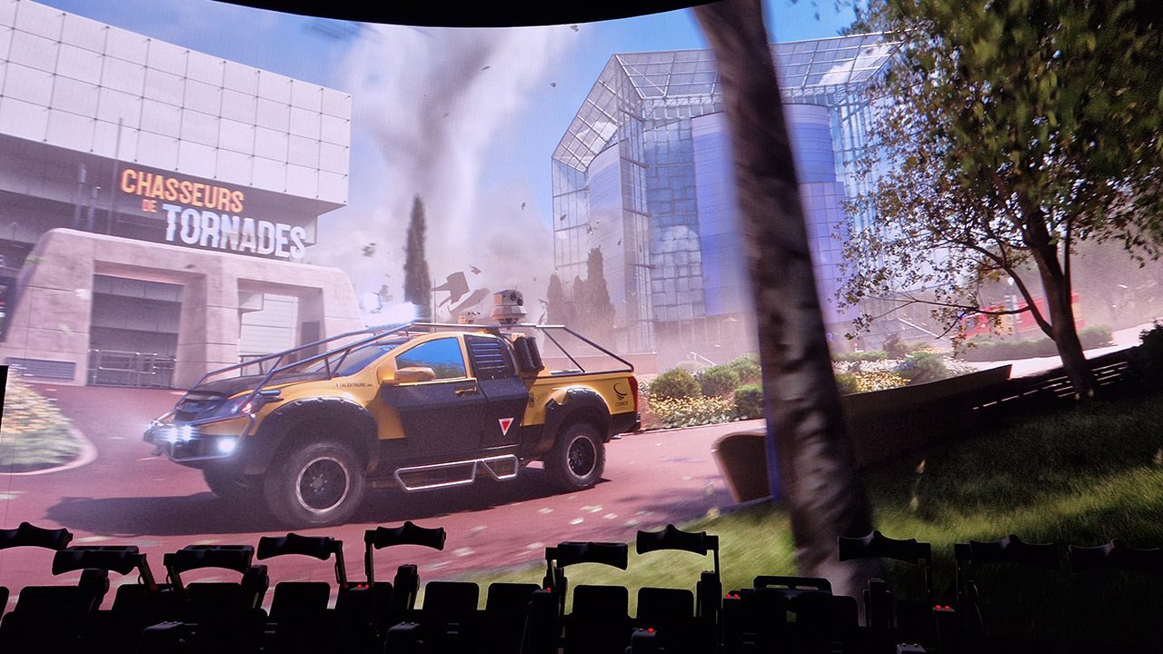 Since July 2, 2022, visitors to Futuroscope can follow a team of researchers in their all-terrain vehicle in pursuit of tornadoes. Chasseurs de Tornades is the result of 4 years of work carried out by the park and the company FMD to create a complete immersive experience supported by state-of-the-art audiovisual technology.