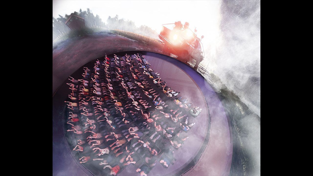 The attraction also incorporates varied sensory effects designed to represent the tornado, offering a total immersion to the audience.