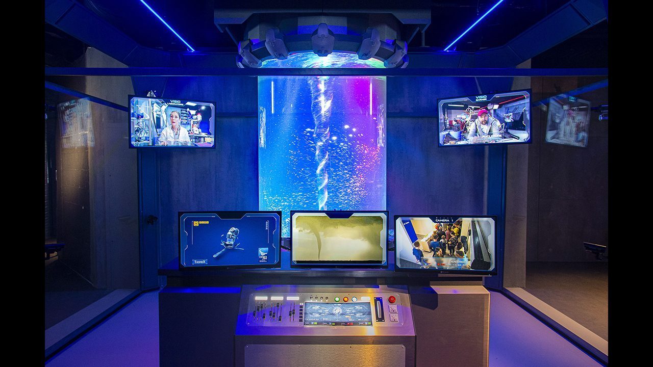 From the pre-show, the audience enters the experience thanks to the discovery of the Center for Extreme Meteorological Studies and its protagonists. Visitors then join a 6m long holographic theater mixing video and actors. For this pre-show space, 20 x Samsung IFR25 2.5mm pitch panels are installed and powered by 1 x Modulo Player Pro media server by Modulo Pi, equipped with a 4K output.