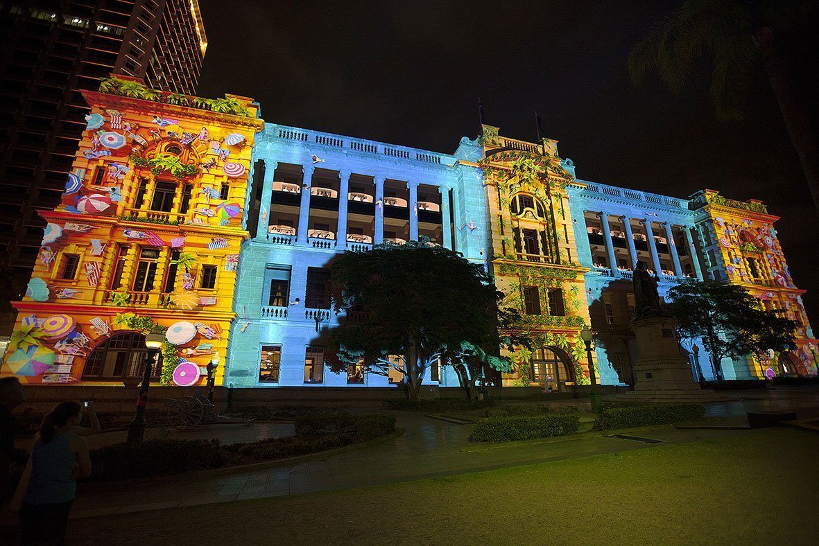 The Electric Canvas was appointed by the Queensland State Government to create several projection works as part of the G20 Cultural Celebrations. Some of Brisbane’s most iconic buildings were lit up with spectacular projection mapping controlled by Modulo Player, including Parliament House and the Treasury Hotel and Casino.