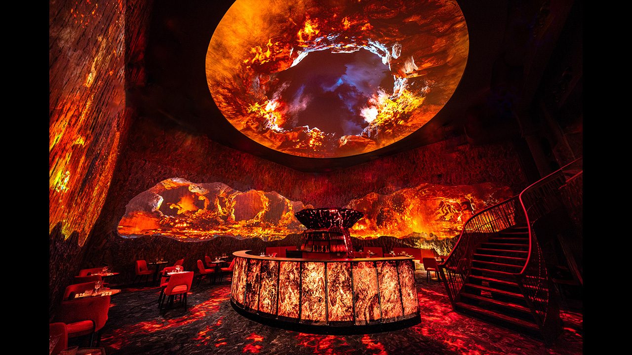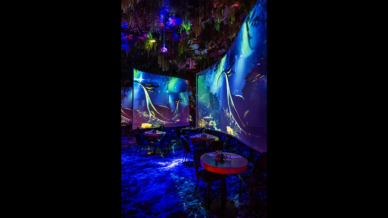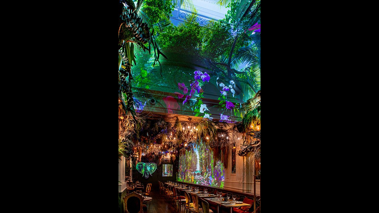 Immersive video projection acts as “a particularly powerful medium” within Ephemera’s restaurants. “We use it to evolve the décor and adapt the atmosphere depending on seasons, key moments, or specific events,” she adds. “It’s a very effective way to renew the experience and surprise returning guests.”