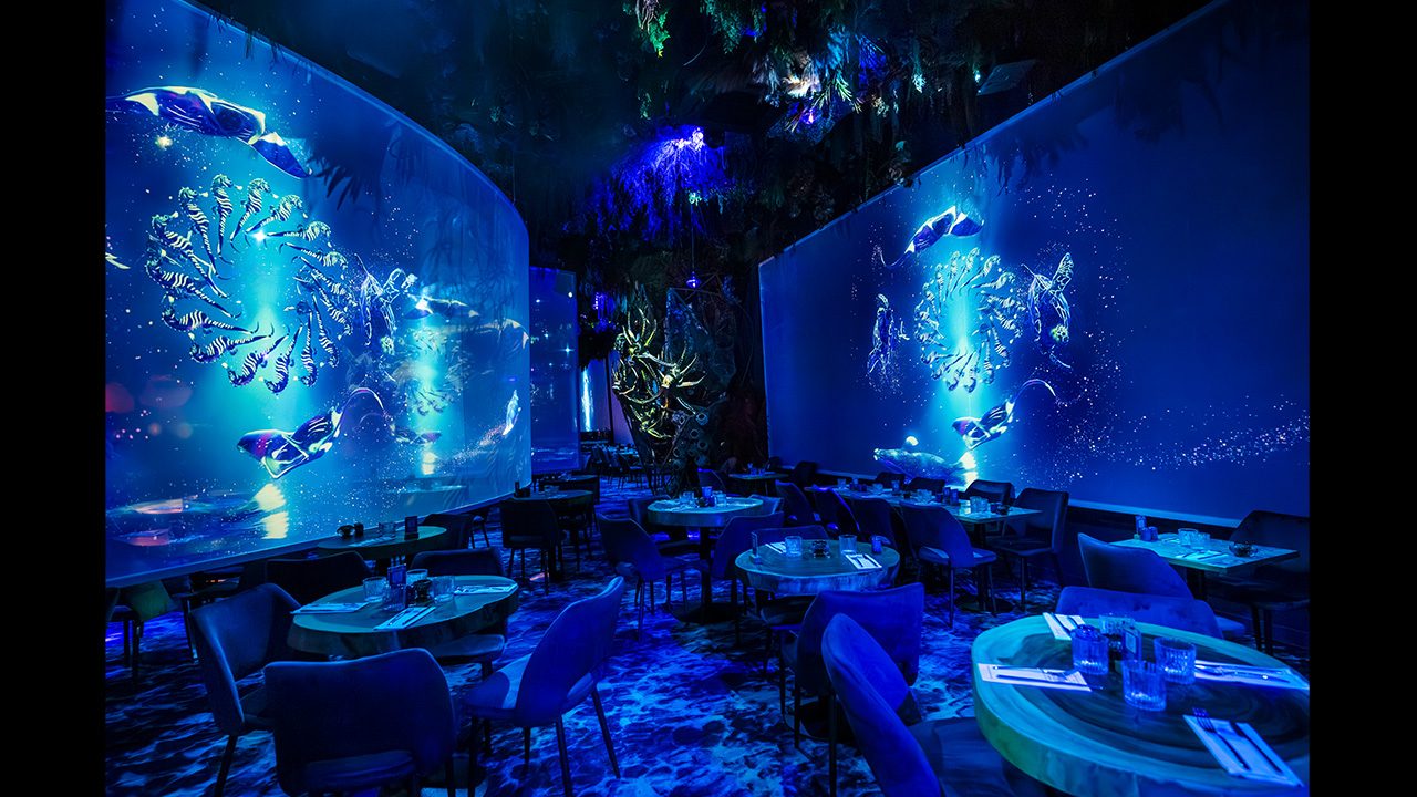 Through its concept of immersive dining, Ephemera Group offers a culinary experience that transports guests into spectacular worlds—from tropical jungles to ocean depths, passing through enchanted forests. To bring these multi-sensory environments to life, the group relies on an audiovisual system designed and integrated by Fosphor, with Modulo Pi’s Modulo Player media servers at its core. Video projection, sound, and lighting come together in a reliable, automated setup capable of running continuously to support the immersive experience for thousands of guests every day.
