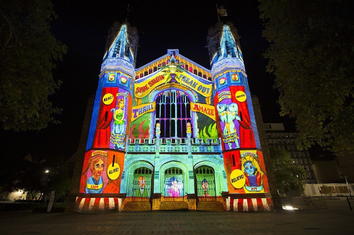 The Adelaide Fringe is the world’s second largest annual arts festival and the largest in the southern hemisphere. The Electric Canvas created projection shows for “Fringe Illuminations” onto three of Adelaide University’s iconic buildings along North Terrace as well as the Art Gallery of South Australia.