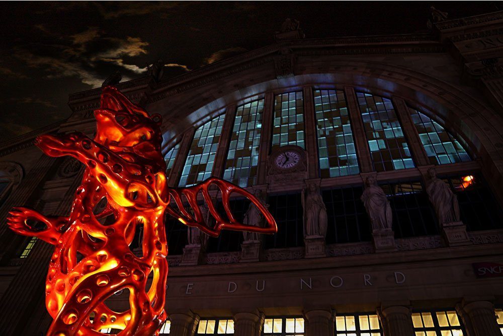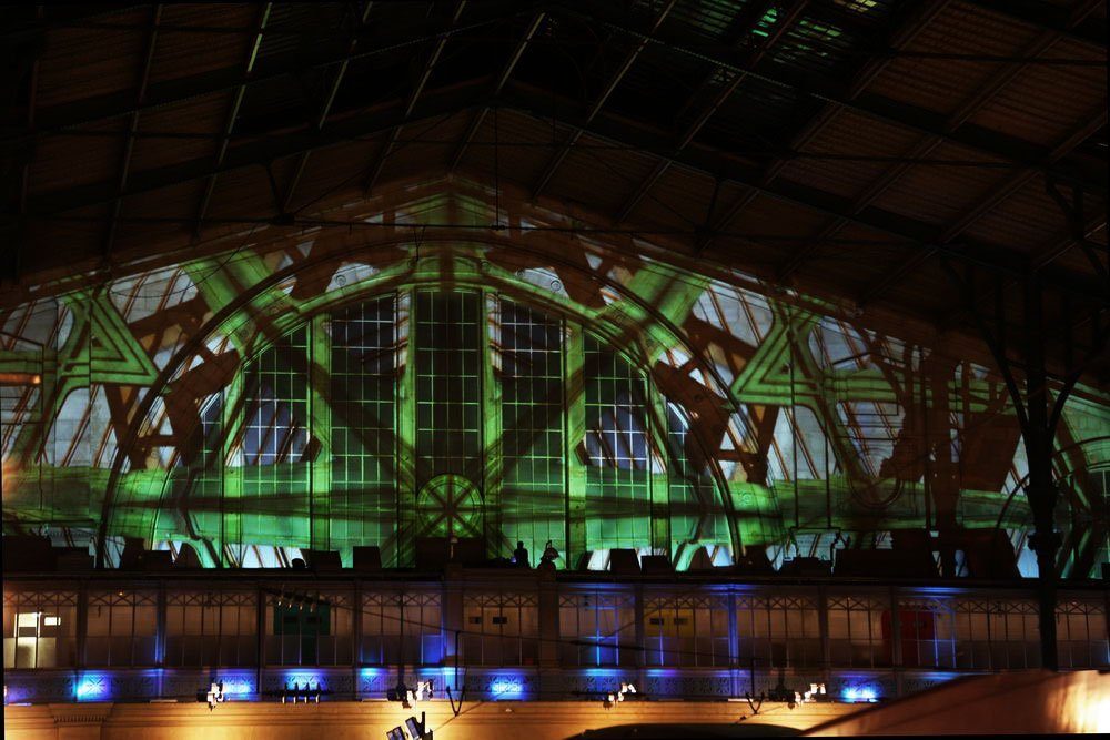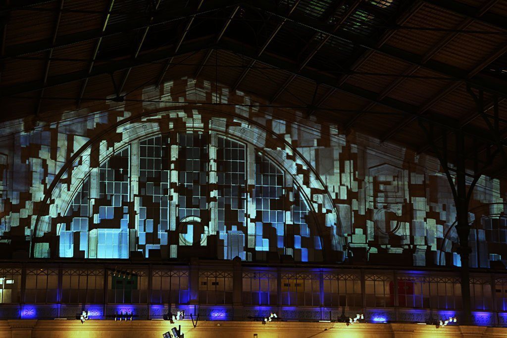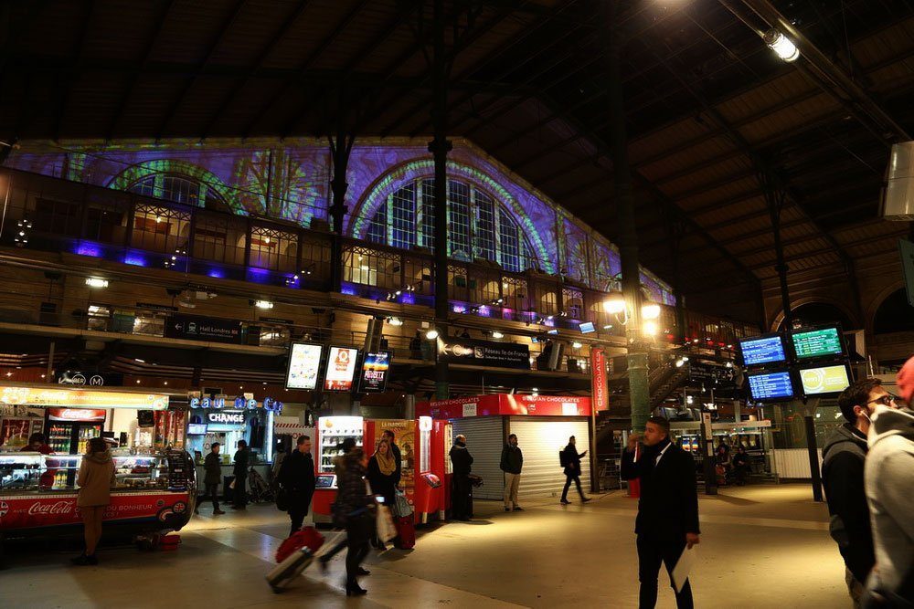 Permanent video installation onto the glassroof of the Gare du Nord train station.