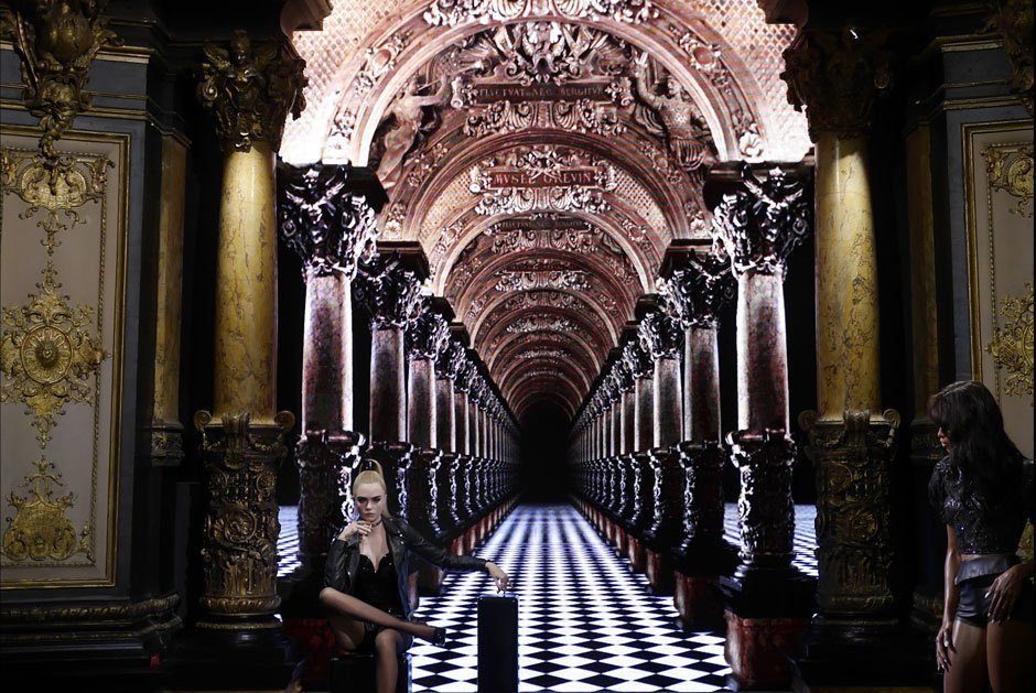 Opening of a new fashion section featuring life-size models of industry figures with a mapping on the baroque interiors of the museum.