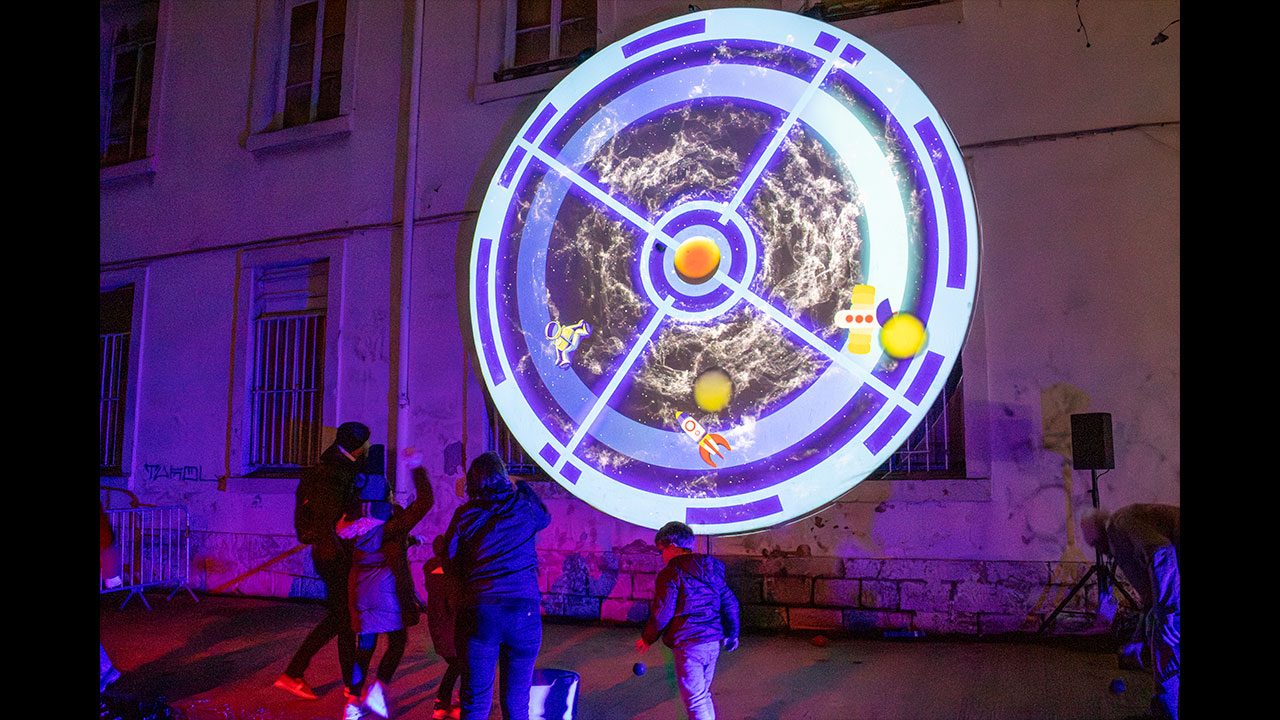 Among the installations designed by Super Idée, Chamboul-Space is a giant, digital and interactive target game offering an immersion into outer space.