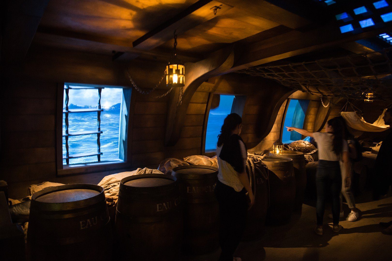 of extraordinary scenes through the portholes. A combination of 3D video projection