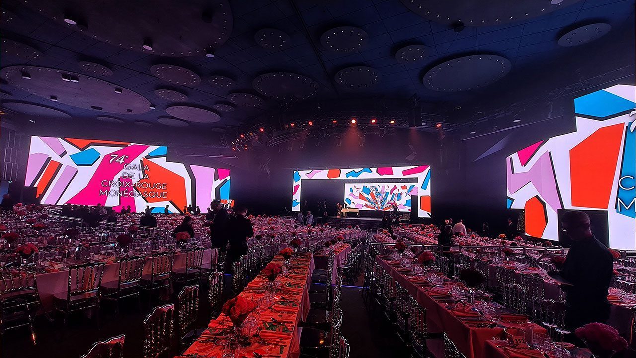 The Société des Bains de Mer was responsible for the artistic direction of the gala. Technical production was entrusted to Monegasque company Mediacom. For this exceptional evening, 3 Absen LED walls were installed: A central screen and an arch from the Polaris PL 2.5 range, and two side screens from the Lyra 3.9-7.8 range, for a total surface area of around 360sqm.