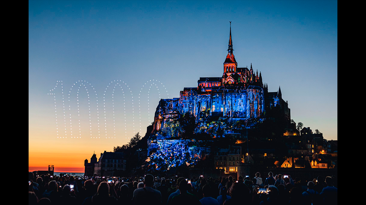 The technical production of this grandiose mapping was entrusted to AV technical provider VLS. Comprising 5 scenes, the spectacular combined video projection, sound, 18 beams of light and 400 drones.
