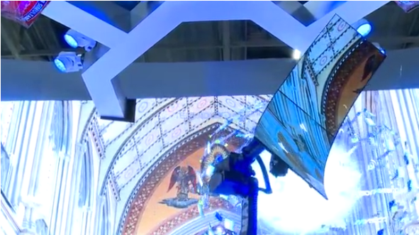The original set-up was designed especially for Heavent, and came with a few challenges: Vincent Nast, managing director of Ze Boite, explains: “ I wanted the content to move seamlessly between the archway screens and the robot’s head screens. We needed a media server behind all this, and I immediately thought of Modulo Kinetic to create this set-up that had never been done before.”