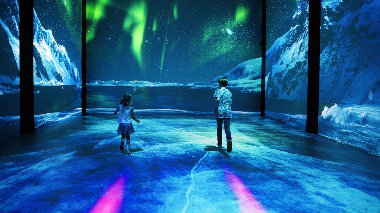 Designed by Dreamed By Us, the experience propels visitors into 6 emblematic scenes of the poles, highlighting their grandiose beauty and fragility. Executed by Ki Studio, the post produced and 3D animated media content is projected onto the walls and the floor, reaching 650 sqm of video-projection.
