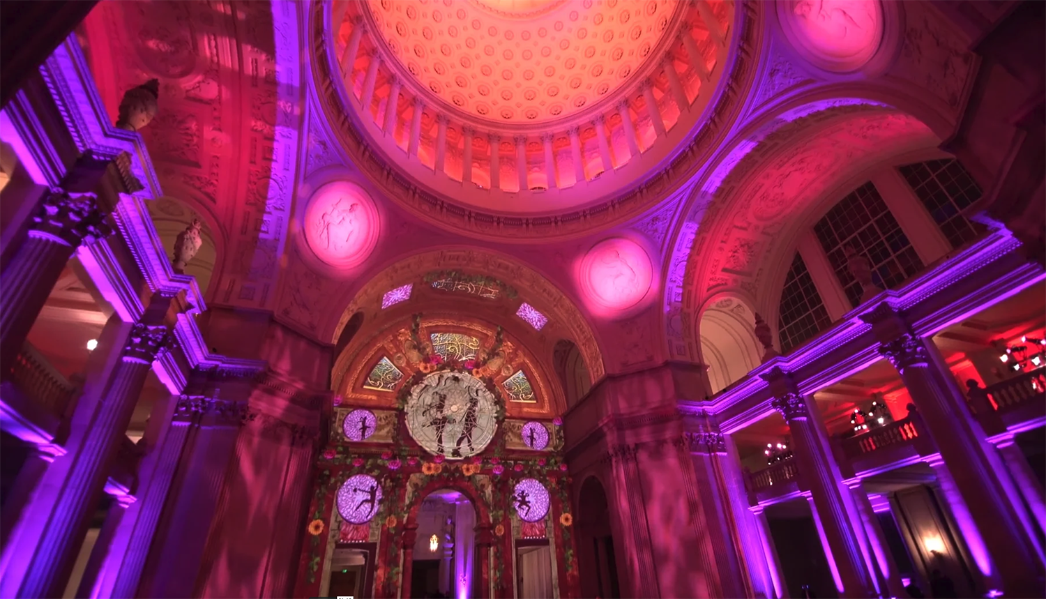 To project on the 50’x70’ arch of the Rotunda, Immersive made a two-projector blend using Christie Boxer 30K video-projectors. The production company chose the Modulo Kinetic media server solution to host media and power the projection mapping.