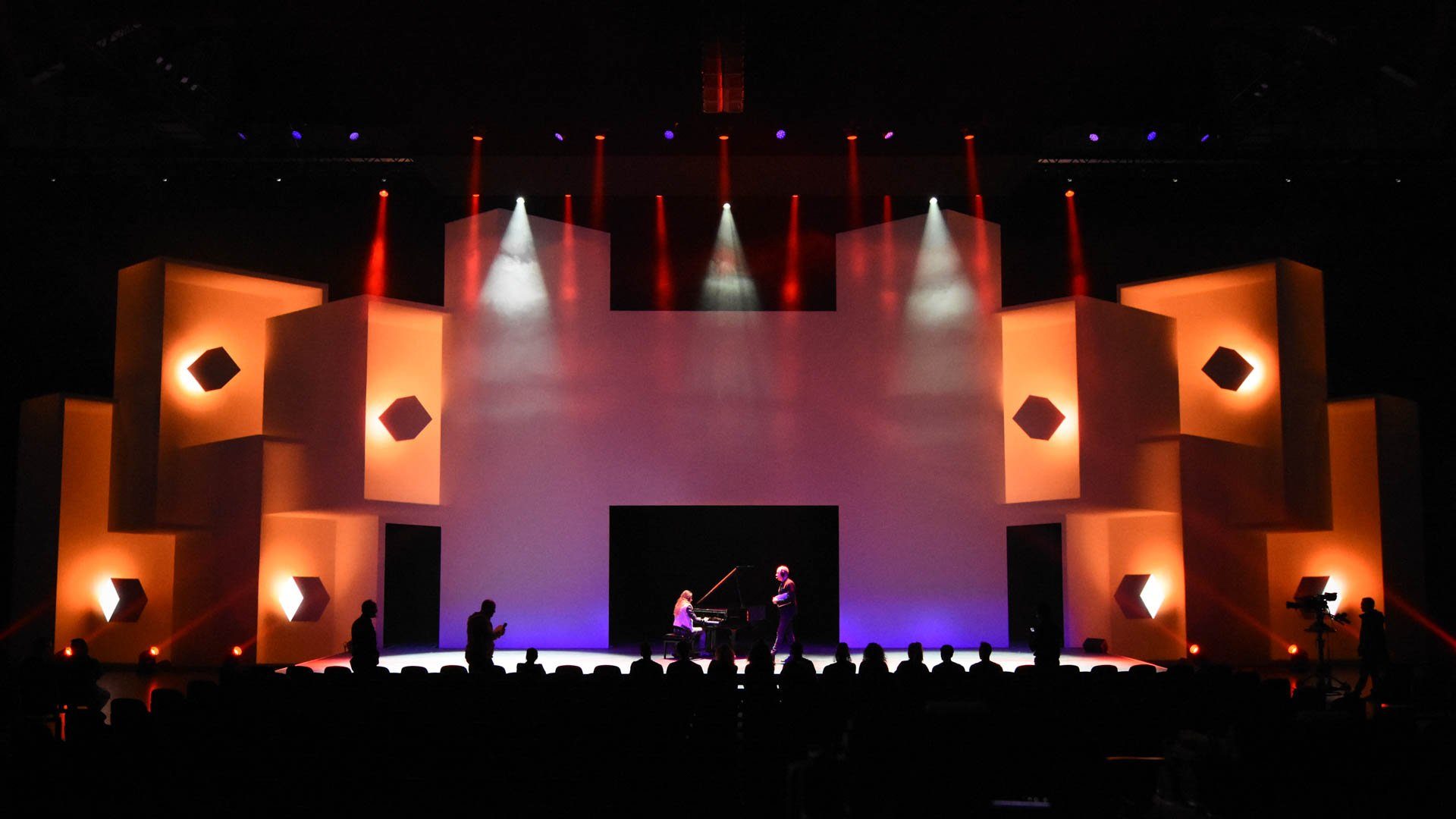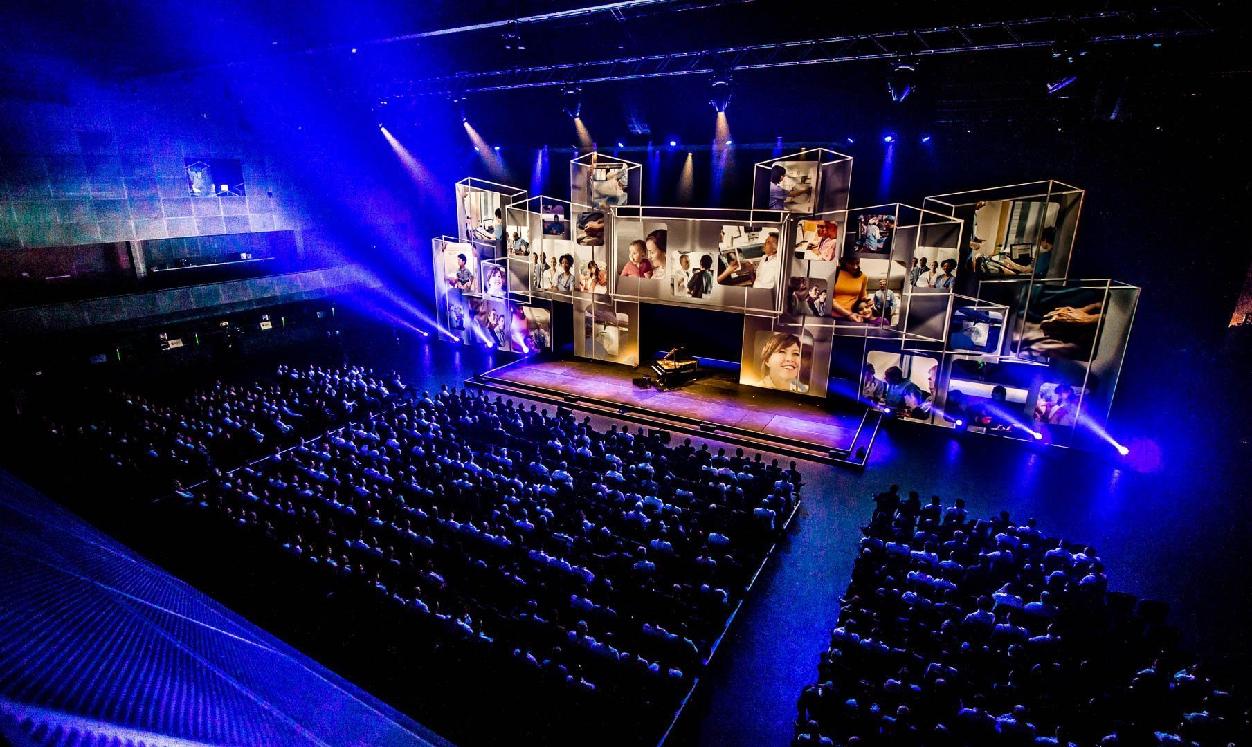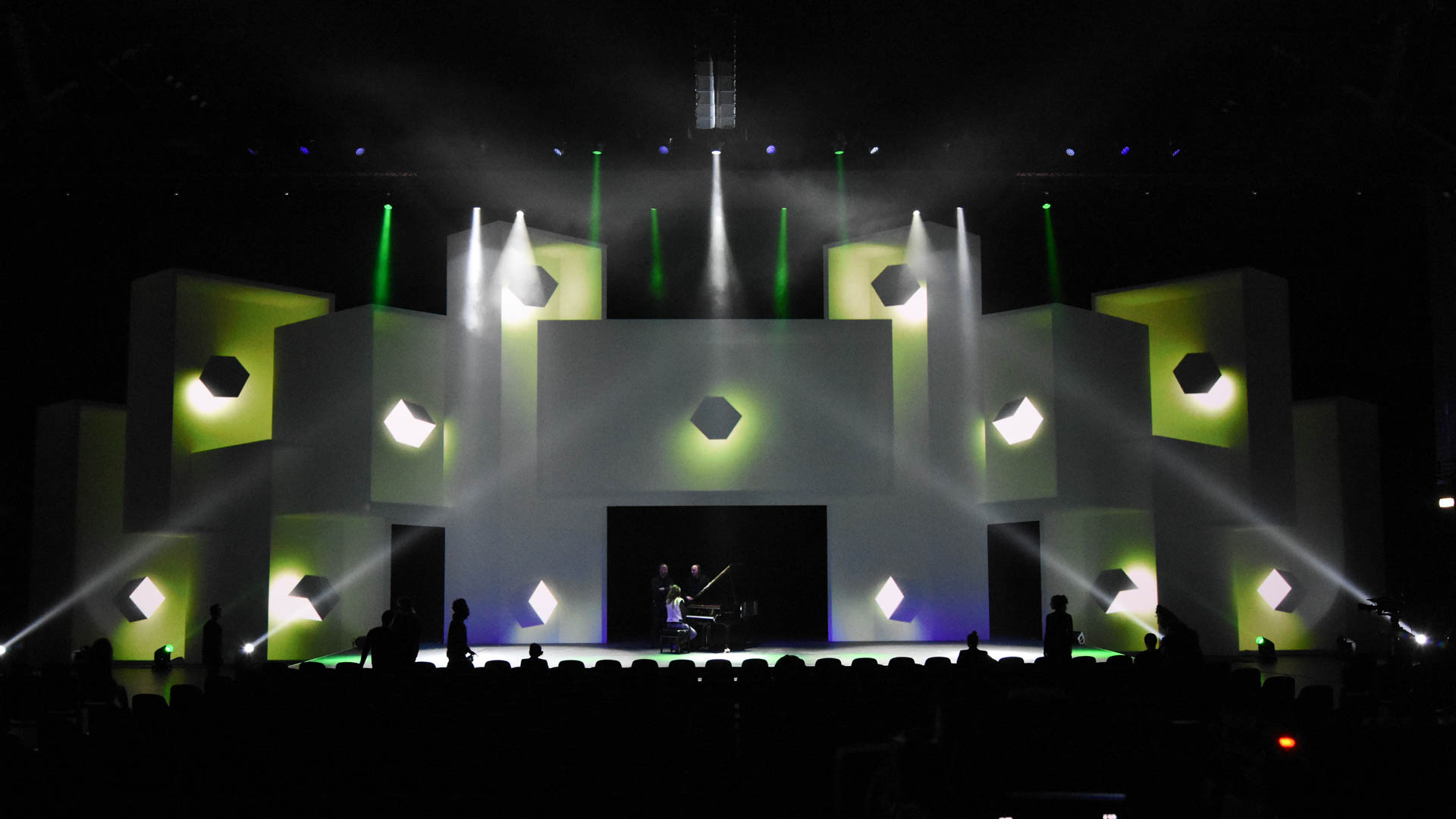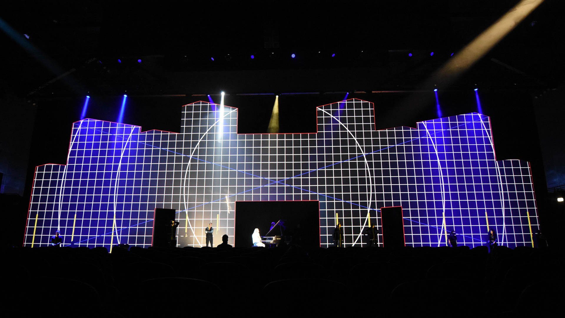 “In collaboration with the technical production company NEOC we created a massive stage projection mapping in the AFAS live venue. We used 2 x Barco HDQ 4K 35000 lumens projectors and 2 x Modulo Player media servers to play and map the native 7K x 2K resolution content. Take a look at the pictures and (rehearsal) movie to give you an idea what a 3D mapping compared to a normal projection can do for your event!” BeamBrothers