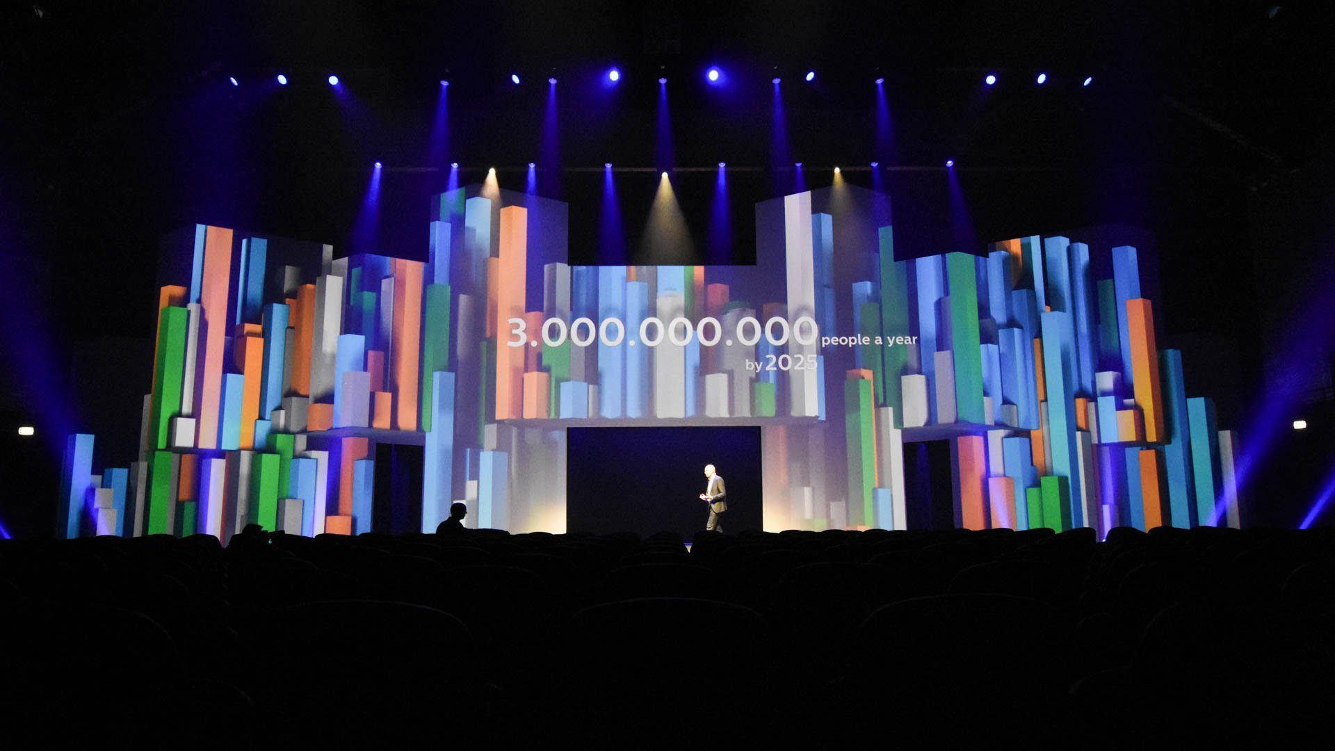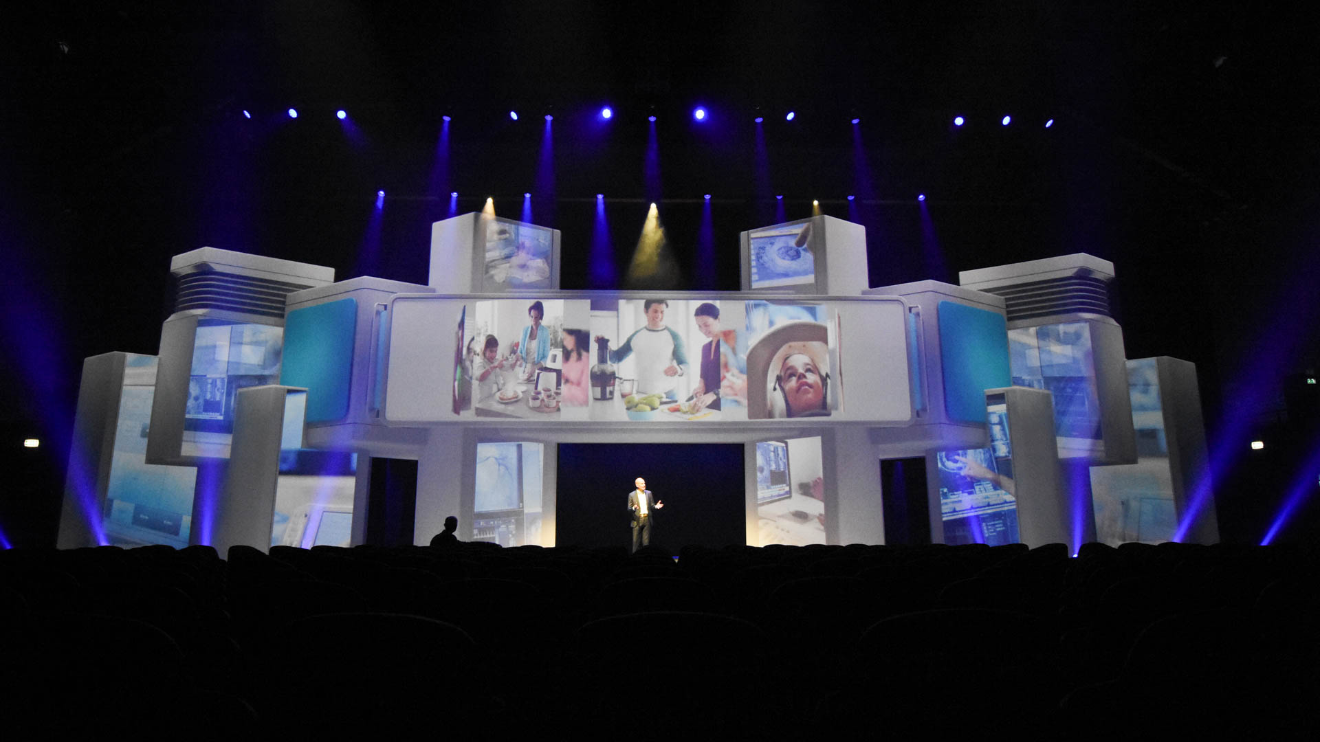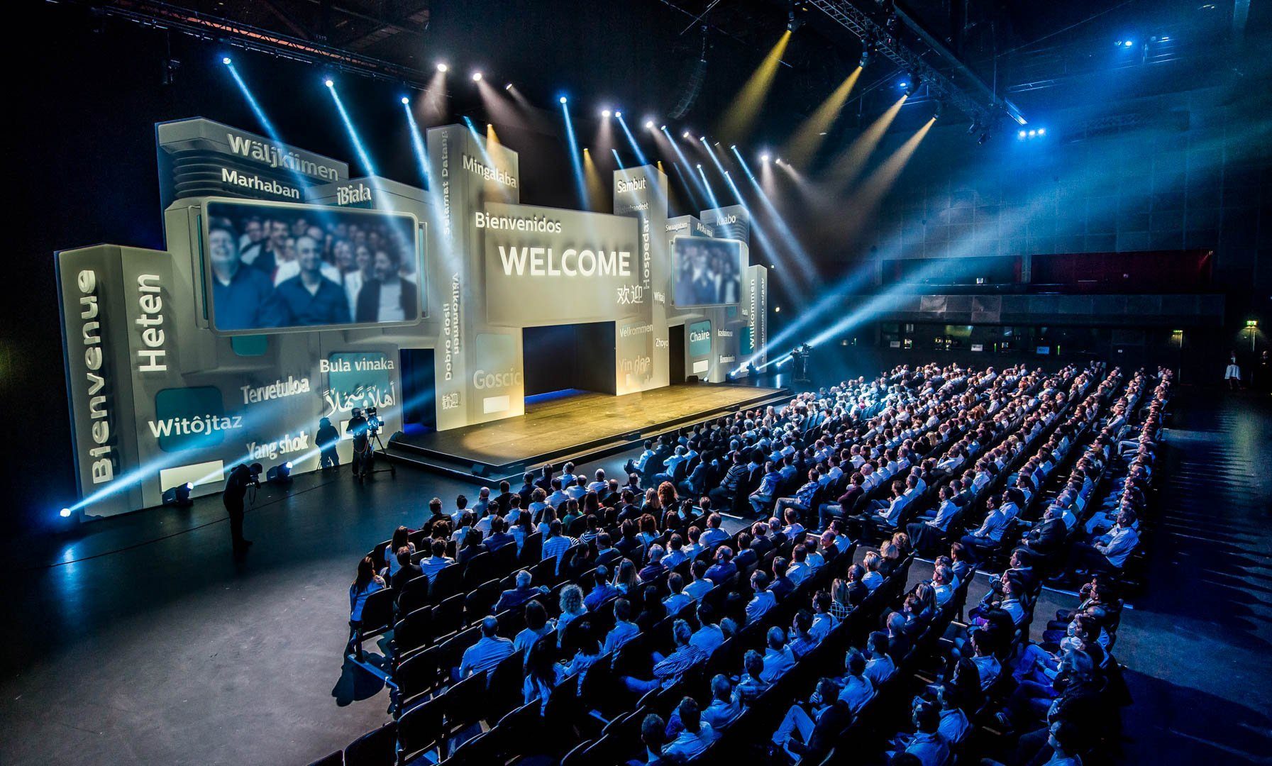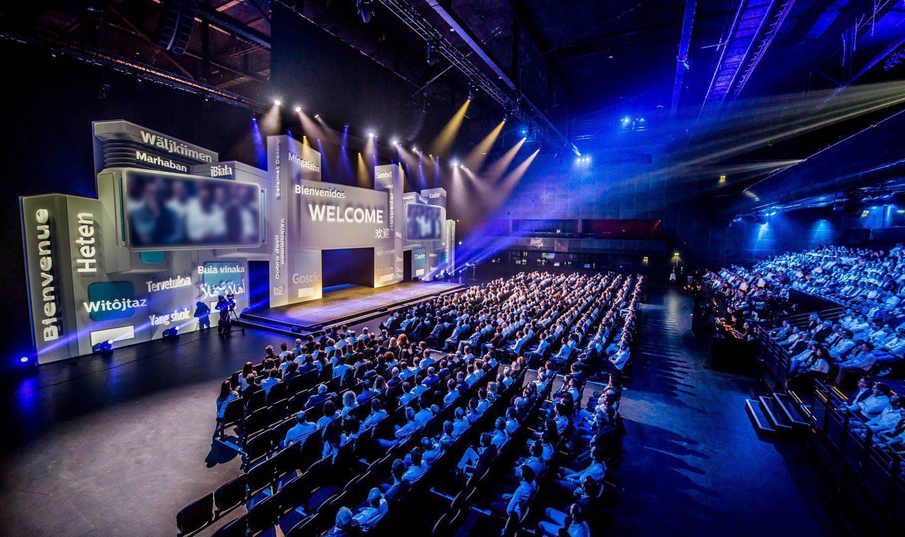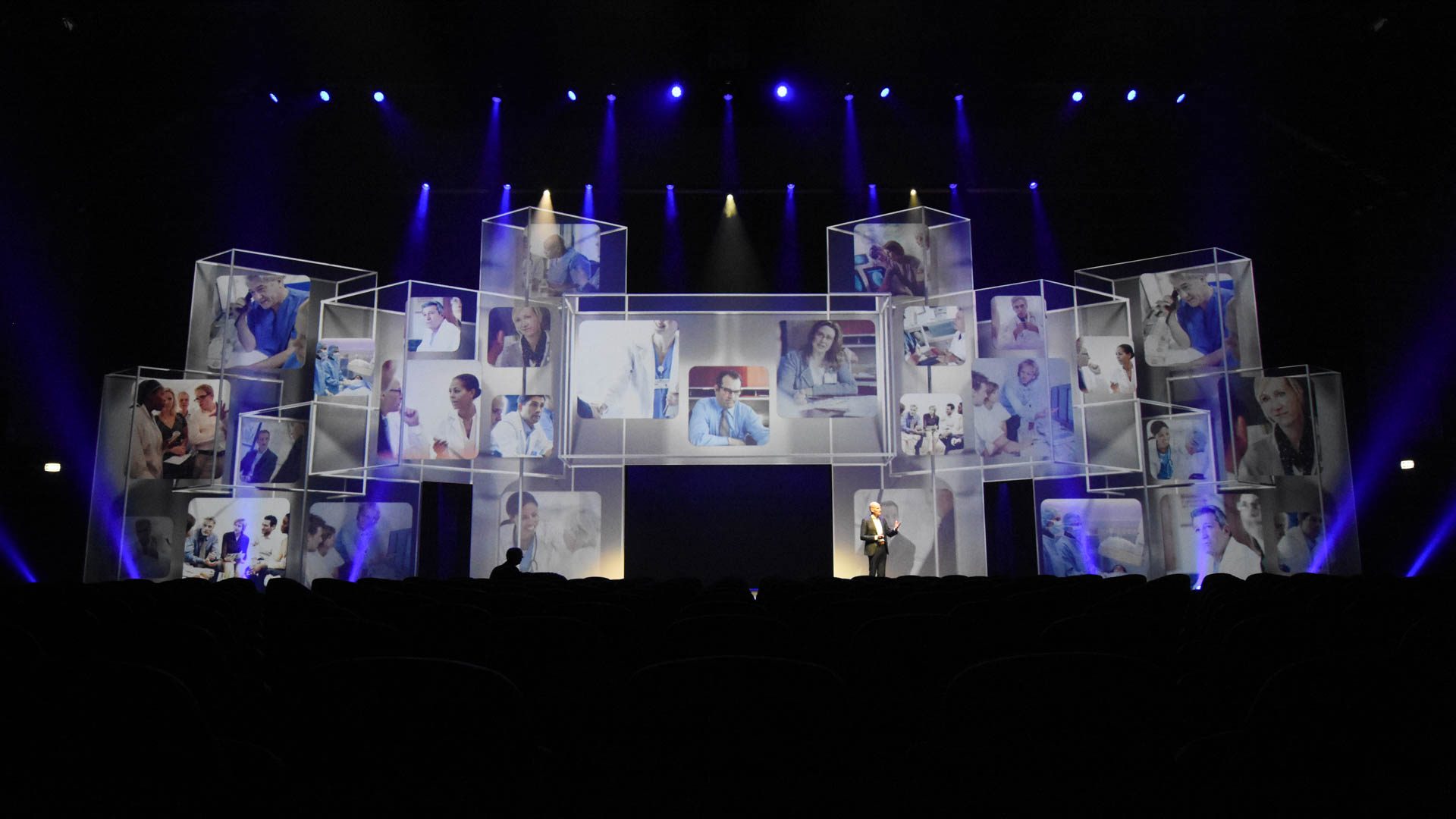 “In collaboration with the technical production company NEOC we created a massive stage projection mapping in the AFAS live venue. We used 2 x Barco HDQ 4K 35000 lumens projectors and 2 x Modulo Player media servers to play and map the native 7K x 2K resolution content. Take a look at the pictures and (rehearsal) movie to give you an idea what a 3D mapping compared to a normal projection can do for your event!” BeamBrothers