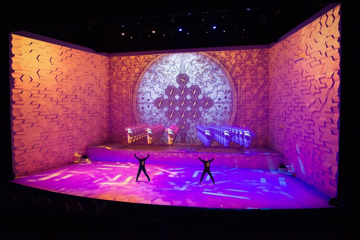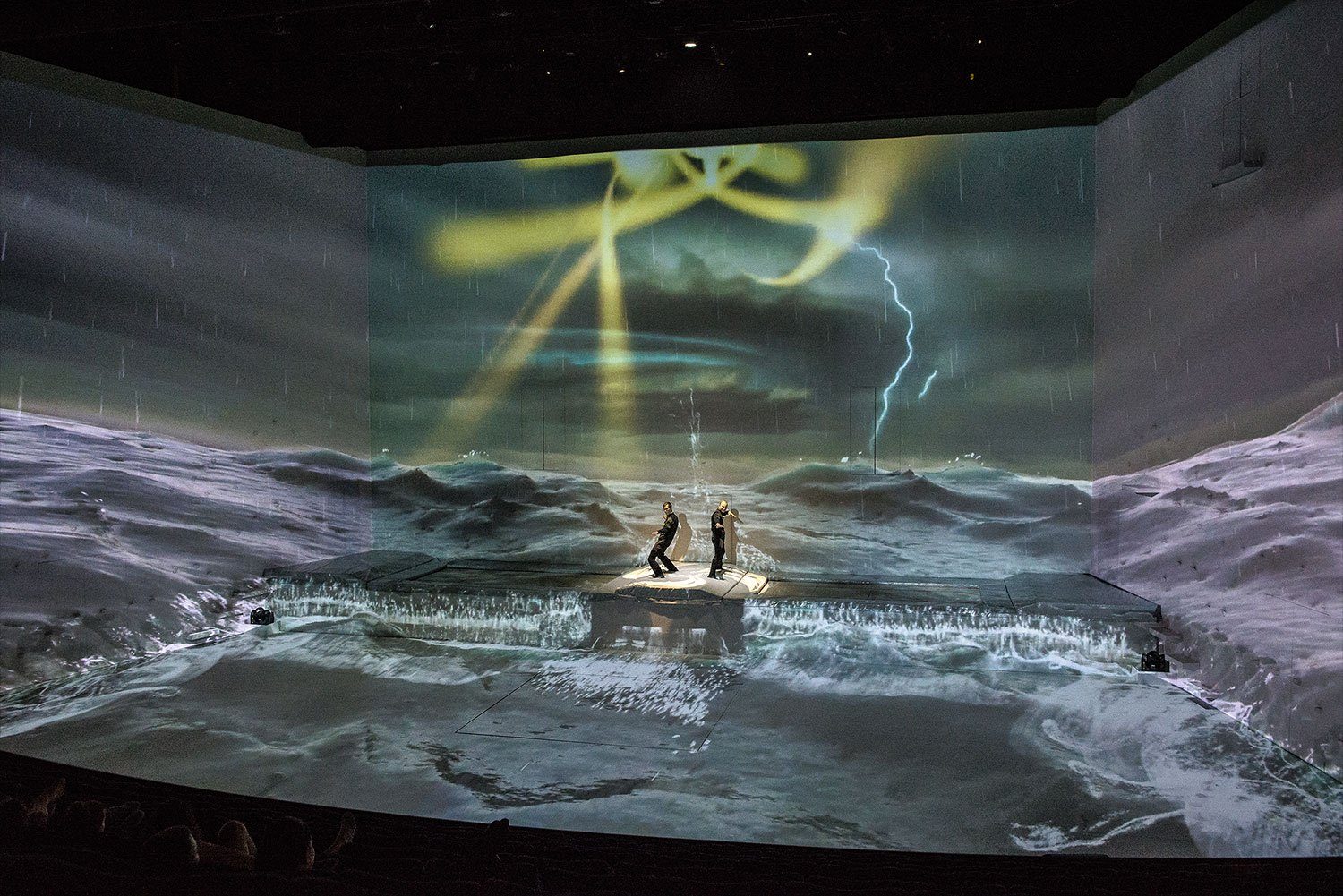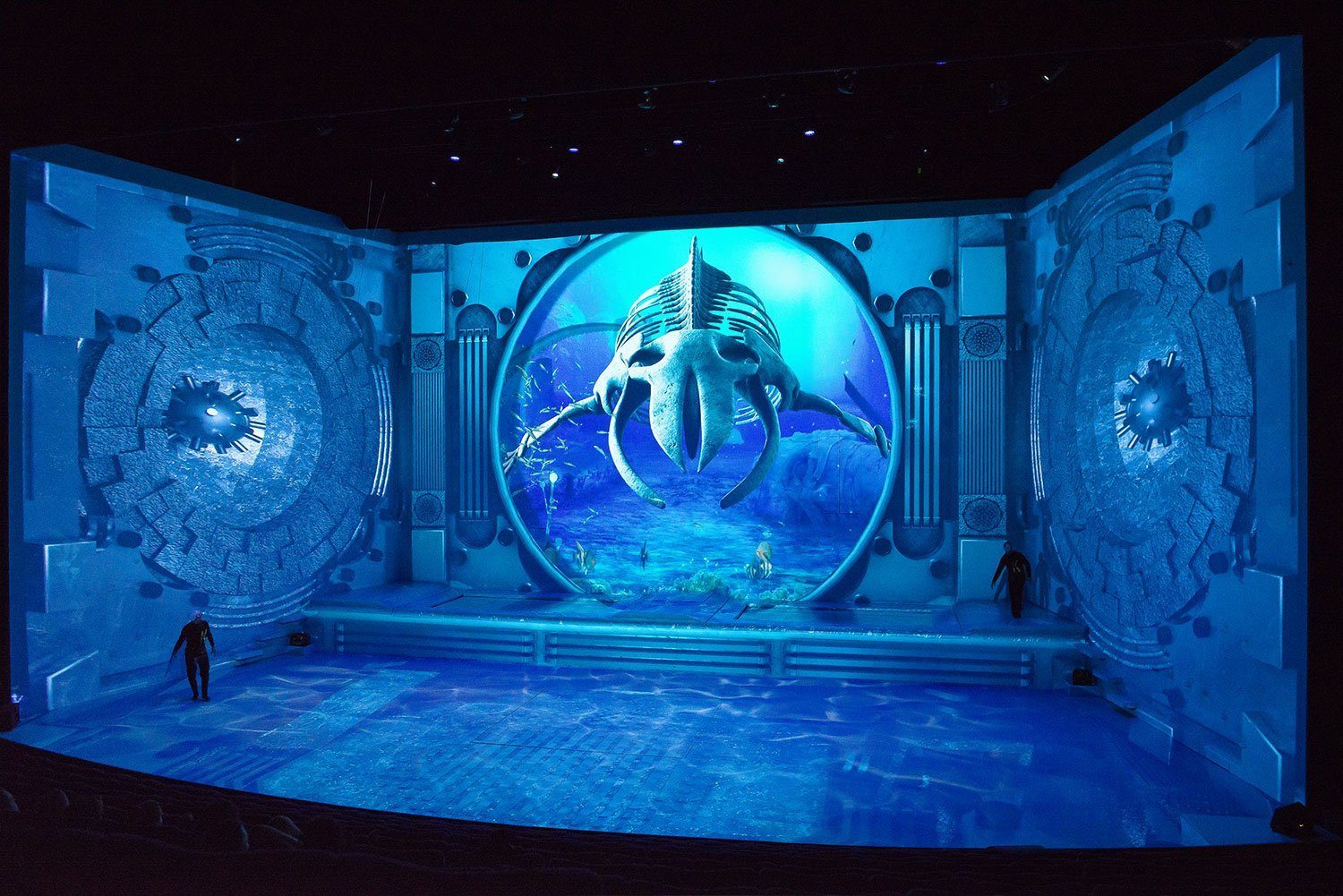 600 m2 video mapping as decors for an unique show with acrobats and dancers.