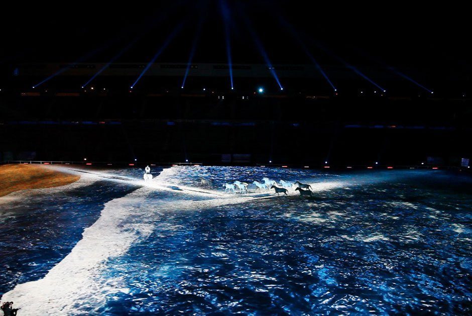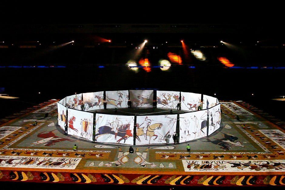 Opening and closing ceremonies at the Ornano stadium of Caen, Normandy, in front of 20,000 spectators. Almost 100 horses, 400 actors and giant video projections for this international event.