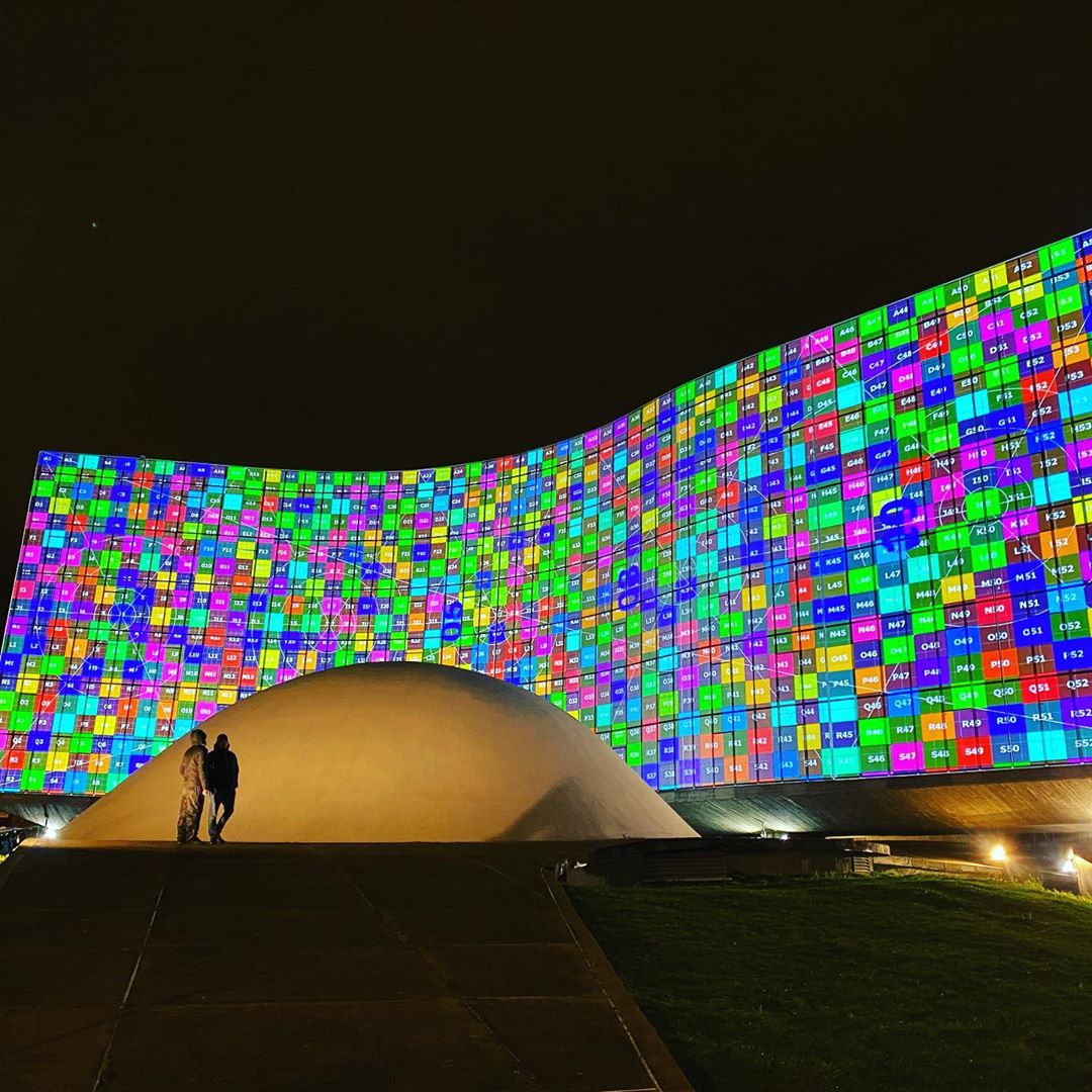 During the 2020 Paris Fashion Week, Kanye West organized the reveal of its new Yeezy Season 8 collection. The fashion show was held in Espace Niemeyer, headquarters of the French Communist Party, with a video-projection on dome and facade relying on 14 x UDX-4K40 video-projectors by Barco, and 3 x Modulo Kinetic media servers.